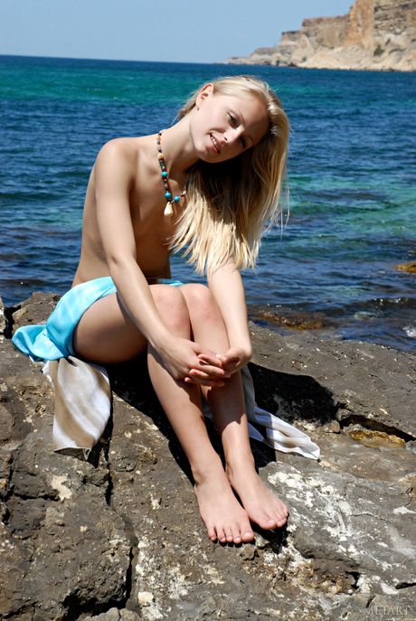 Skinny blonde Gerra A poses nude in the forest & shows her small tits & twat