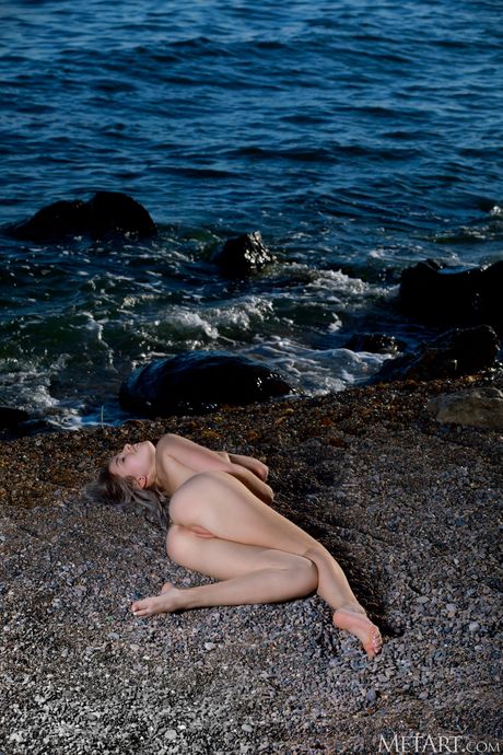 Skinny blonde teen Libby gets naked on a beach fearlessly