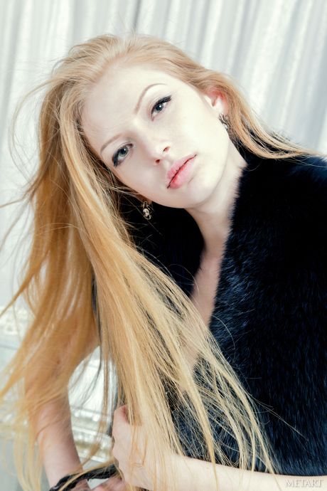 Skinny blonde Verona B removes her bikini and high heels to pose nude