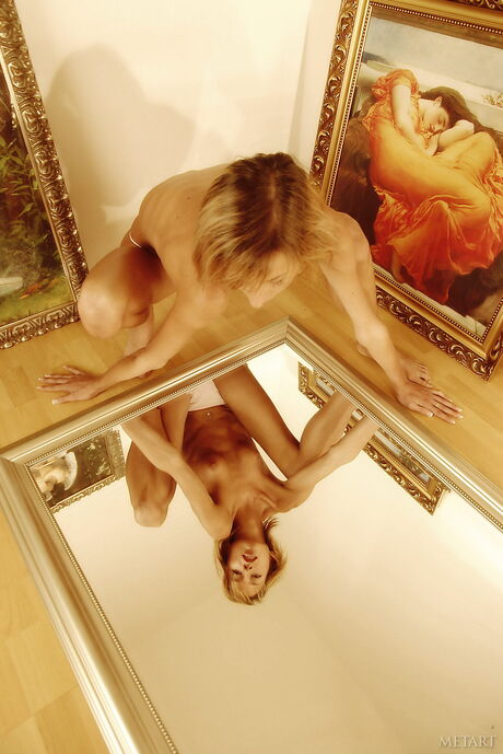 Skinny blonde Yana A removes her panties and presents her tiny tits
