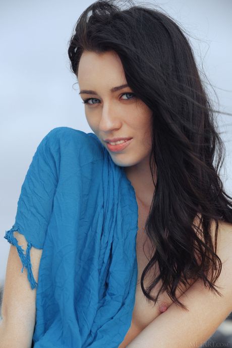 Skinny brunette Zsanett Tormay spreads her legs and muff on the beach