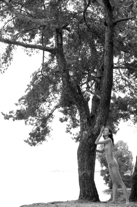 Skinny redhead Julia E exhibits perfect shape on a beach towel in the ocean