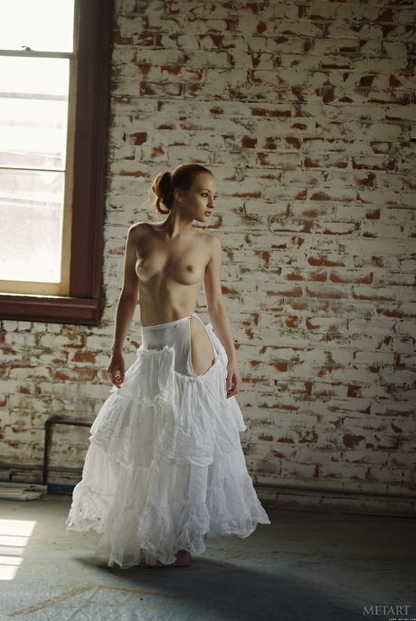 Skinny redhead Sally A gets naked in a ballerina tutu