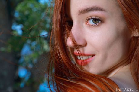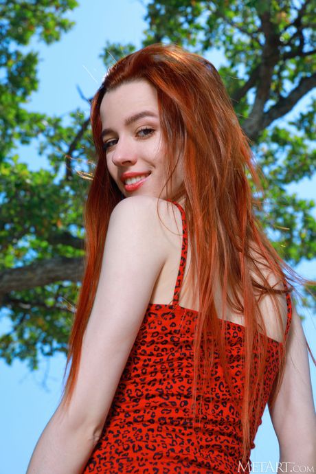 Skinny redhead Sherice gets completely naked on a dock in the sea