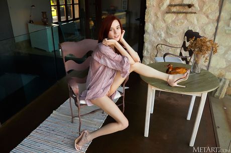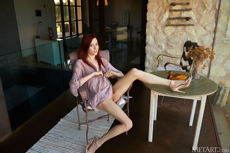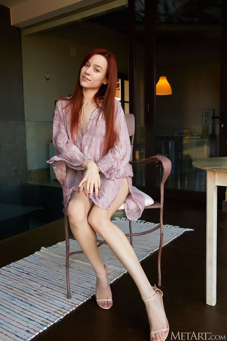 Skinny redhead Sherice removes her sheer dress to pose nude in high heels