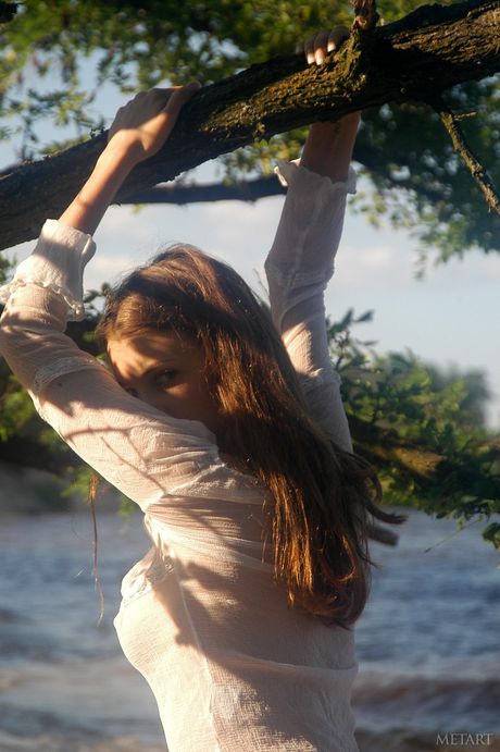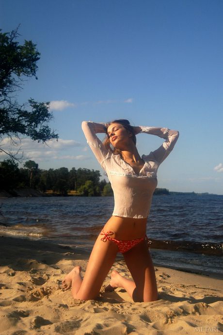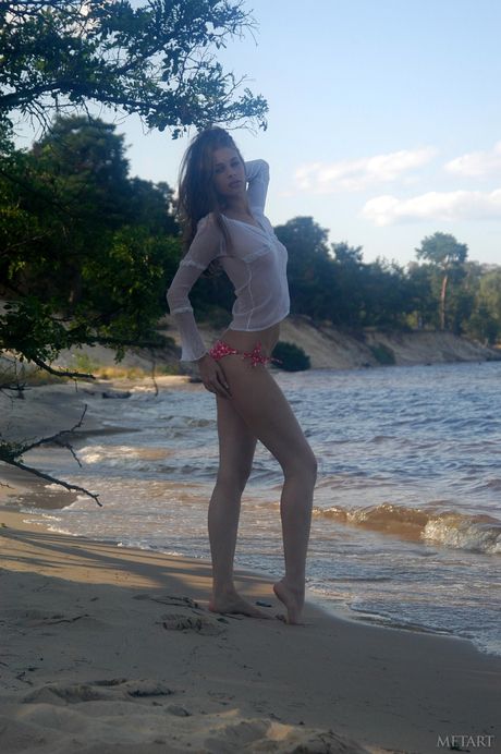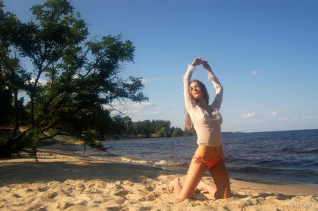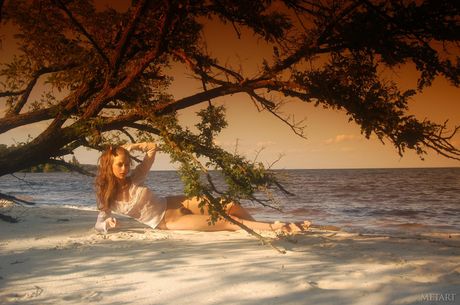 Skinny redhead Vika AC takes it all off on a rocky beach in a bikini