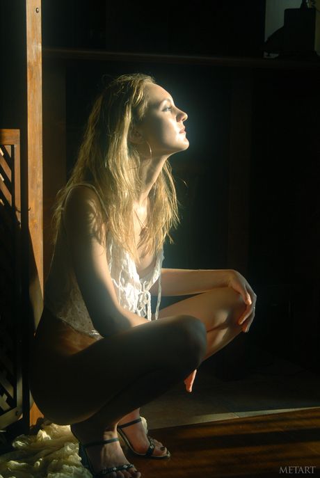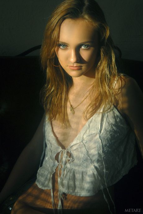 Skinny Ukrainian babe Inna S showing off her tiny tits and bald pussy