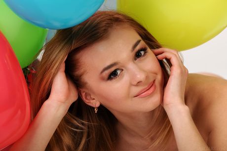 Skinny Ukrainian model Kaleesy shows her big tits and poses with balloons