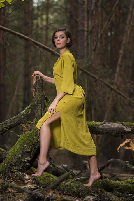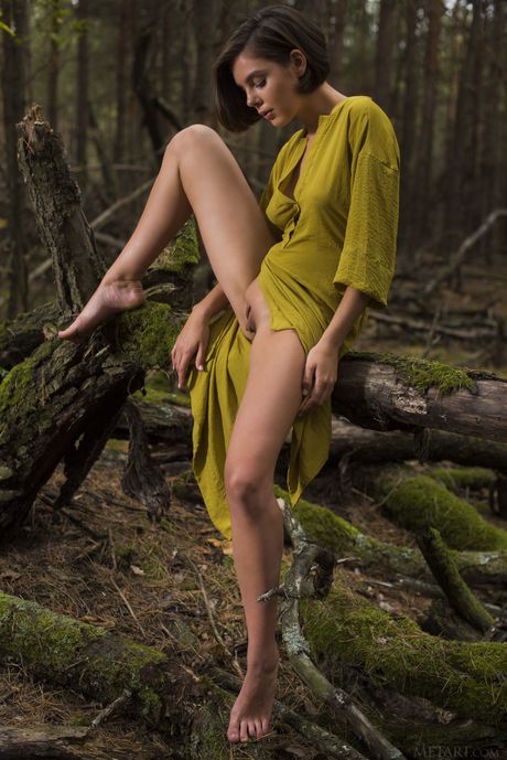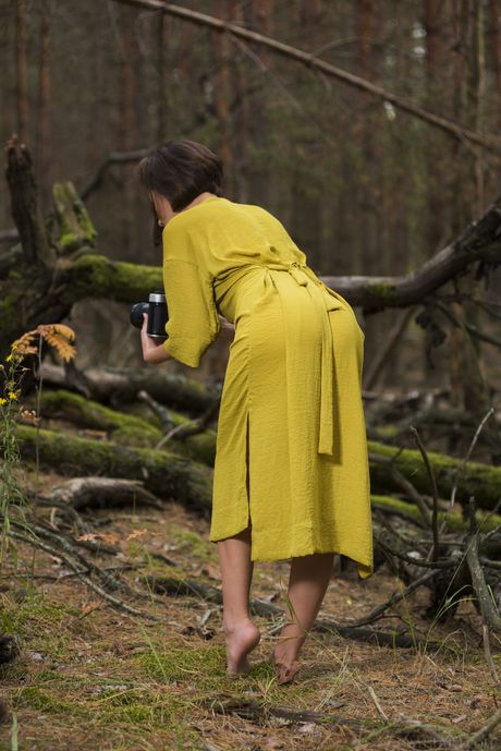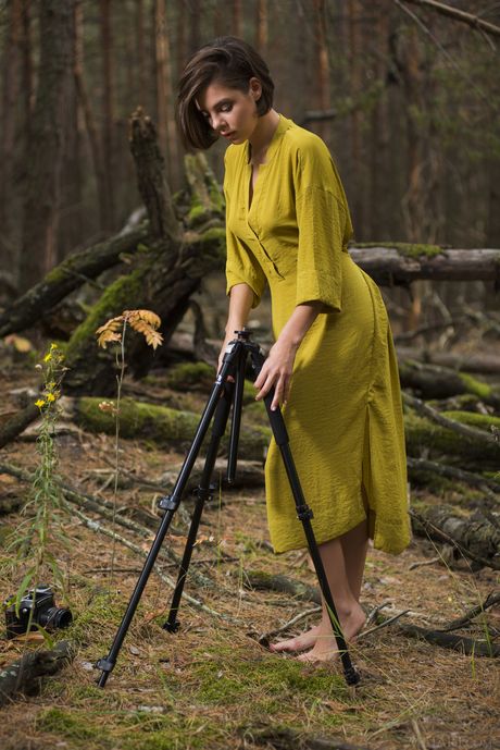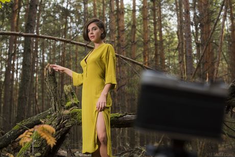 Skinny Ukrainian peach Dakota A strips and poses in the woods