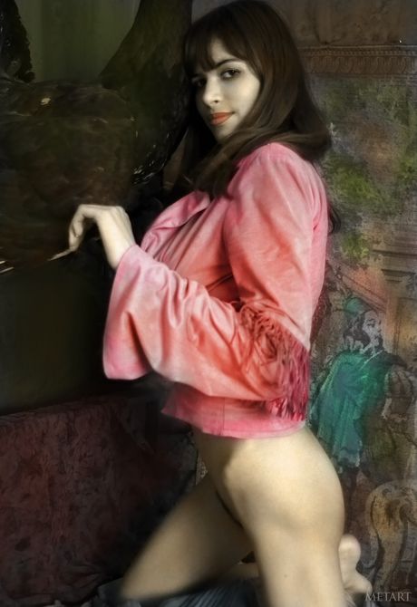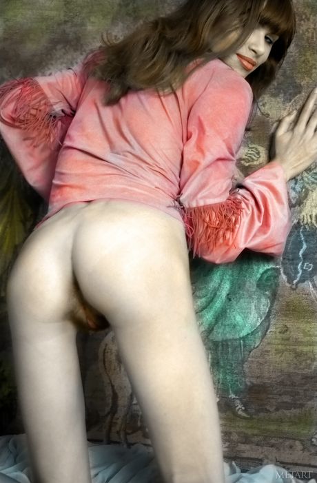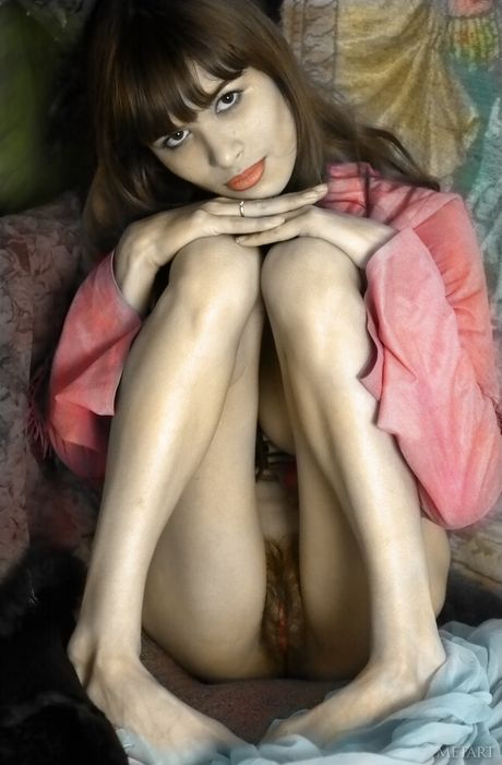 Slender teen Ira G shows her tiny tits and hairy pussy