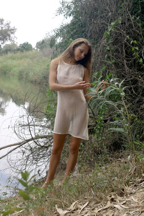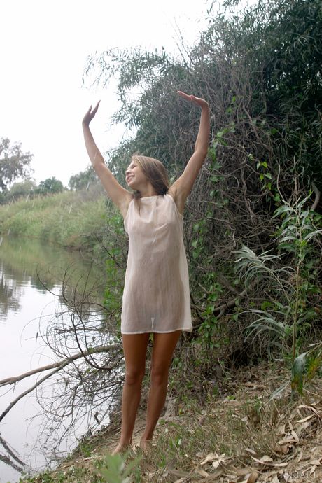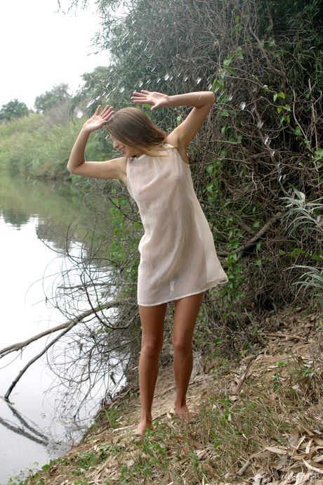 Slender teen Sandra B gets naked boldly during solo action