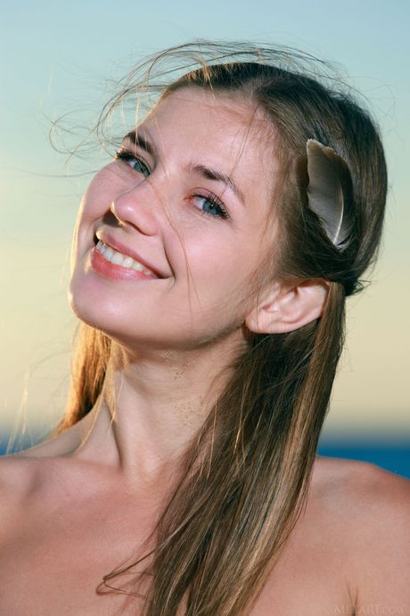 Slender teen Vivian flaunts her tiny tits and poses naked on the beach