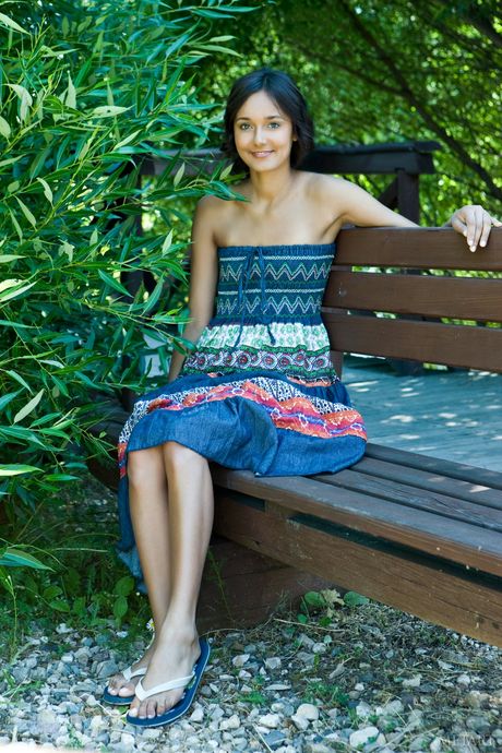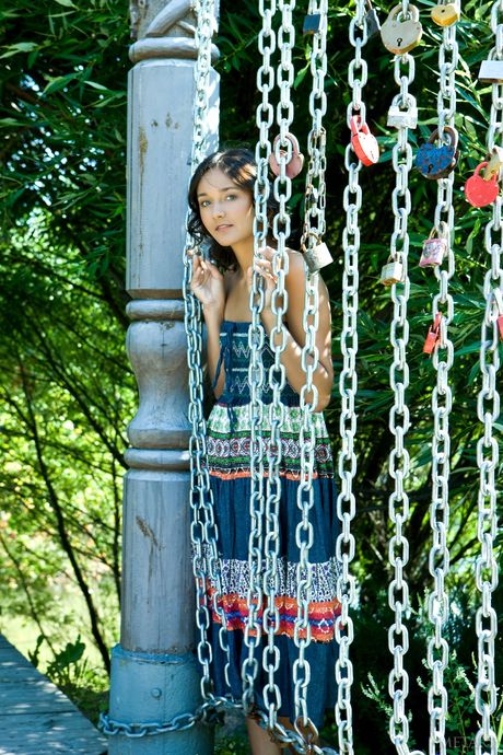 Slim brunette Chandra A strips naked boldly outdoors