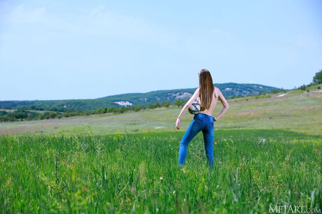 Solo girl Georgia gets naked on a soccer field after playing a game