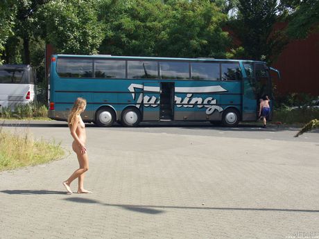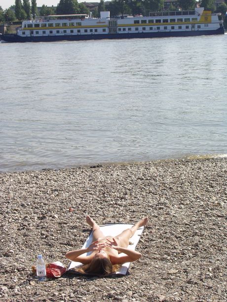Stunning teen Dagmar A models naked on a beach in a pair of sunglasses