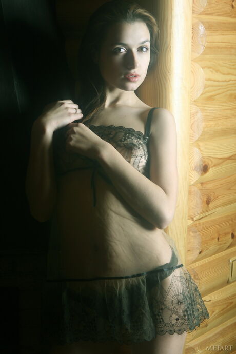 Stunning teen Luda B removes her lingerie and heels to pose nude