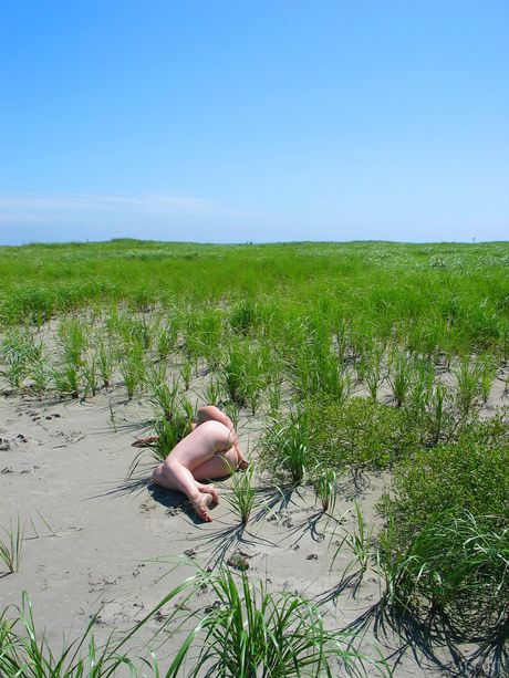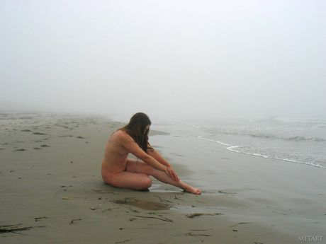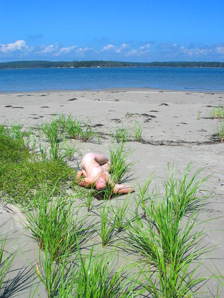 Stunning teen Ronin strips naked & poses on a sandy beach with her friends