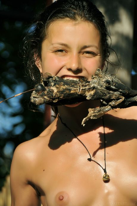 Svelte teen Divina A shows her small tits and hot ass in the forest