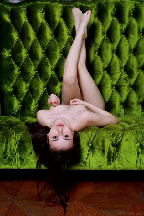 Svelte teen Eva Amari removes her lingerie and heels to pose nude