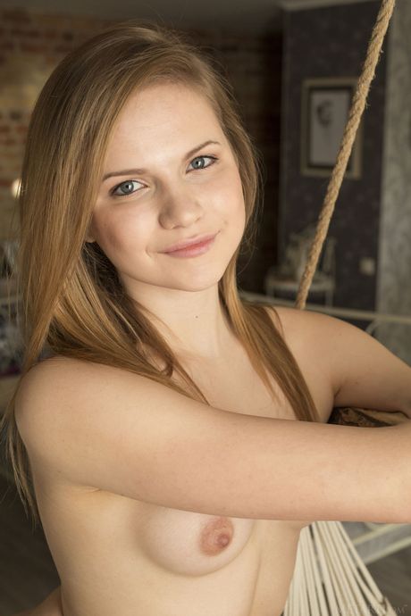 Svelte teen Isabela shows her small tits & her sweet pussy in a hammock