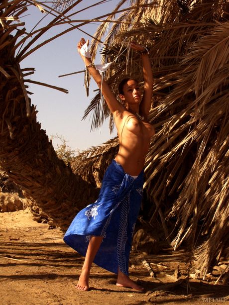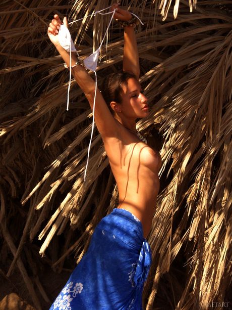 Svelte teen Juman poses nude in the water and on the sandy beach