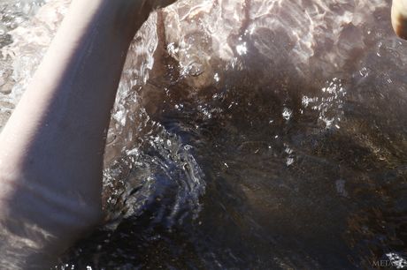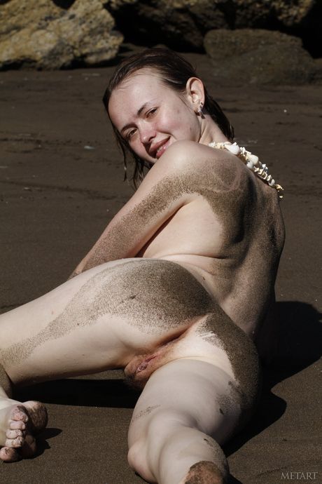 Svelte teen Nastya E showing her tiny tits and posing naked on the beach