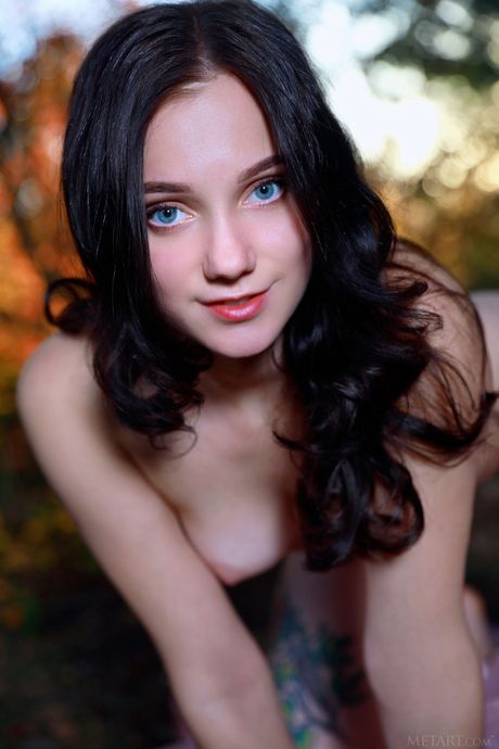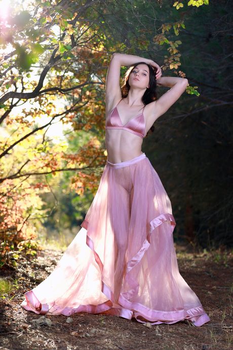 Svelte teen Polly Pure strips down in the wilderness & shows her small tits & bald pussy