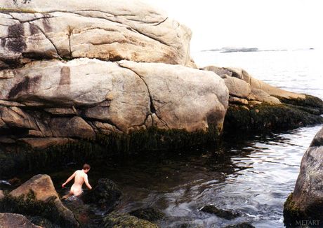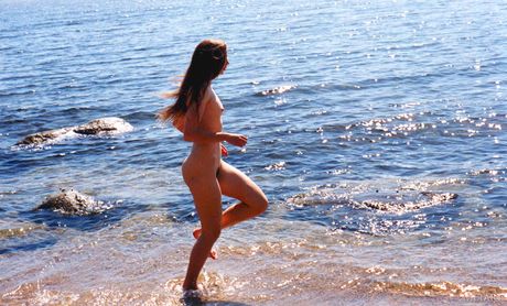 Svelte teen Ronin strips naked & poses on a sandy beach in the sunset