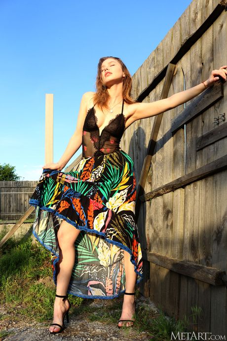 Svelte teen Scarlet strips and poses nude in a public park