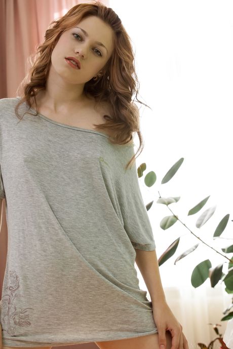 Svelte teen Shirley Tate shows her big tits and poses naked