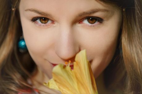 Svelte teen Sofi Shane shows her big tits and poses naked in a hammock