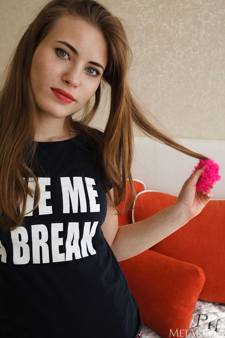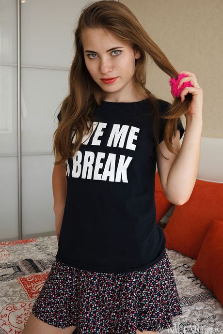 Tempting teen Alaine removes her clothes and panties to pose nude