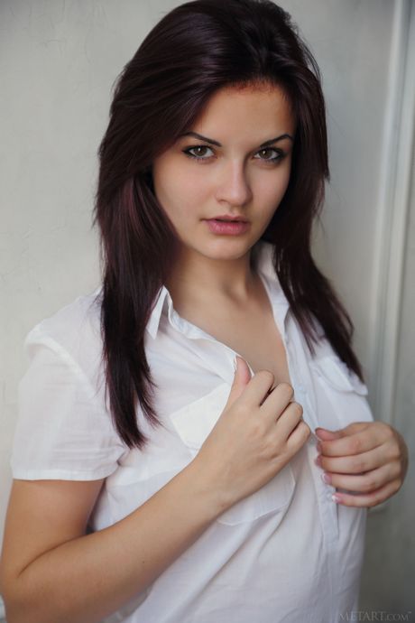 Tempting teen Dulcia removes her dress to model naked boldly