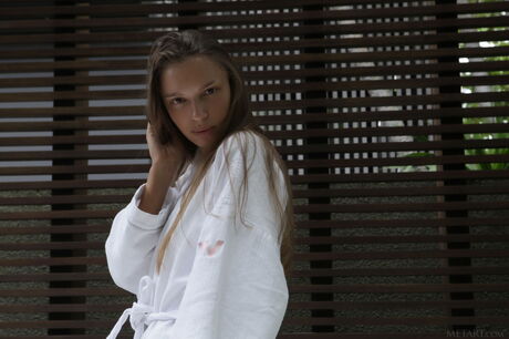 Tempting teen Elin exhibits her big tits and poses nude in a tropical paradise