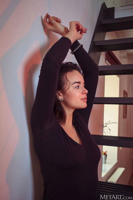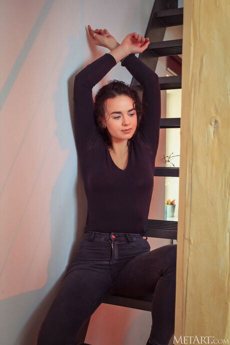 Tender teen Arcadia removes red lingerie to get naked sensually