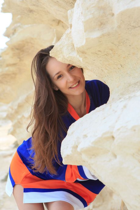 Tender teen Megan Muse takes off everything on a rocky outcropping by herself