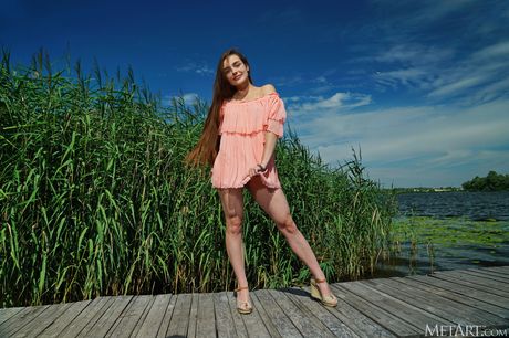 Tender teen Monica Trent bares it all on a dock in the middle of a lake