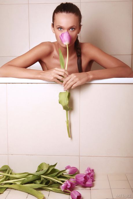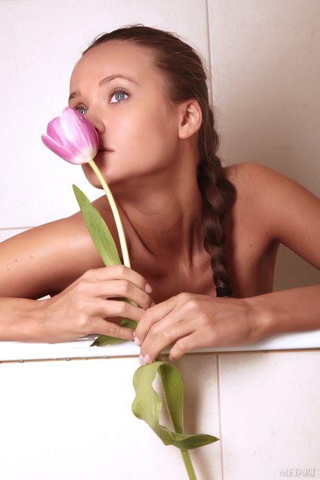 Thin teen Anastasia Petrova removes her bikini and poses naked in the shower