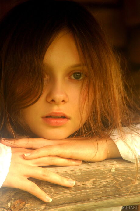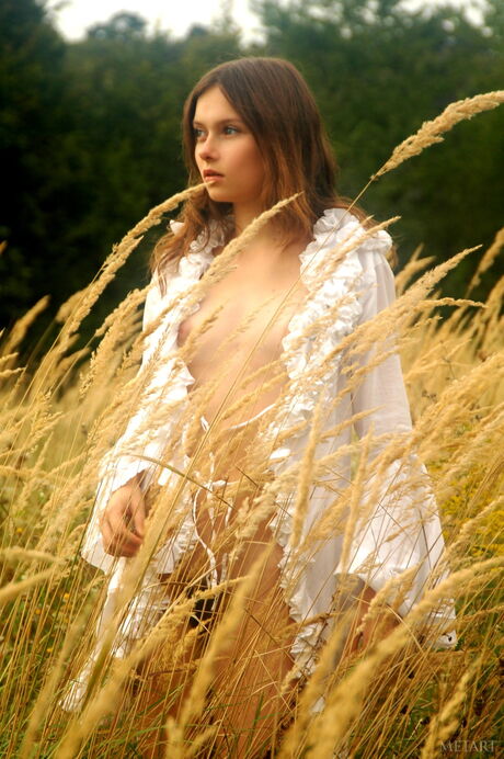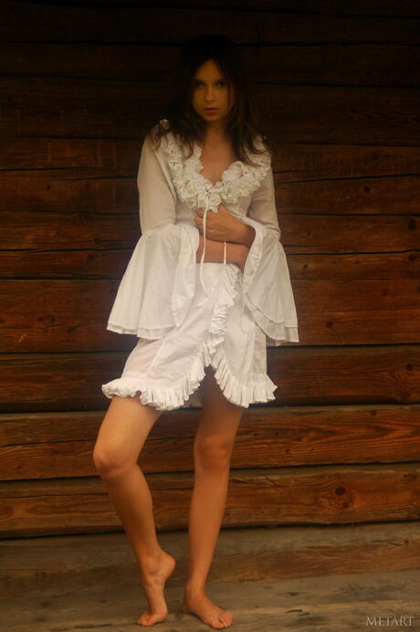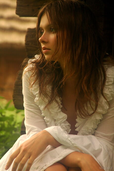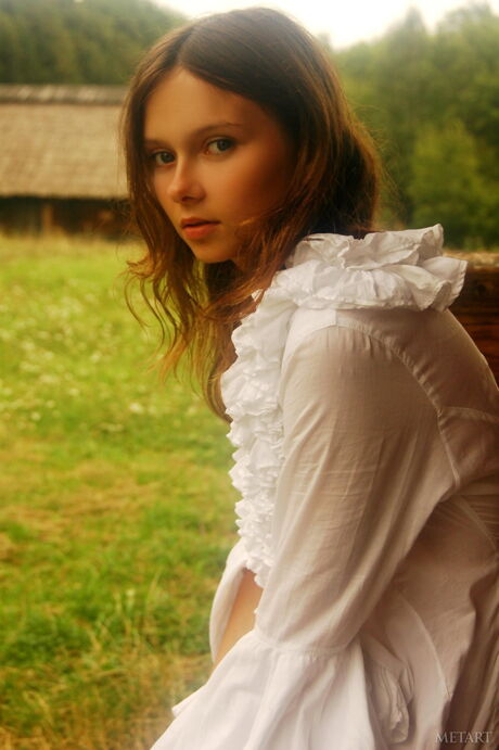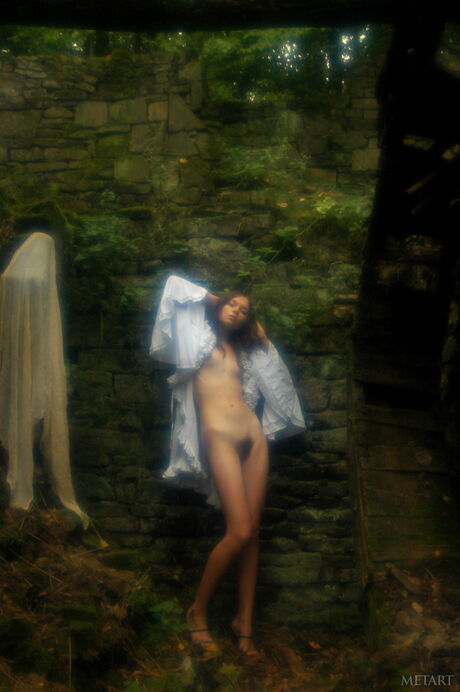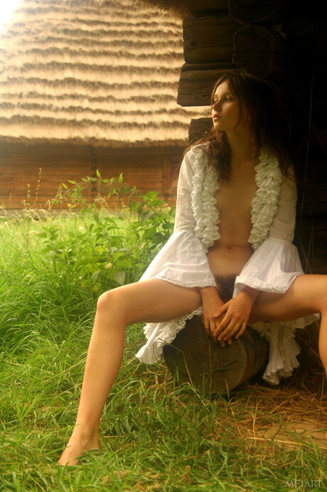 Thin teen Anna S poses nude & flaunts her hairy cunt in the forest
