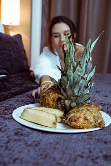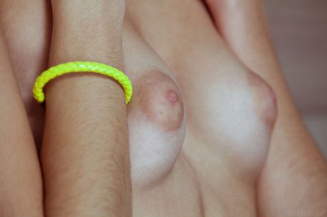 Thin teen Cristin removes her bikini and demonstrates her big tits
