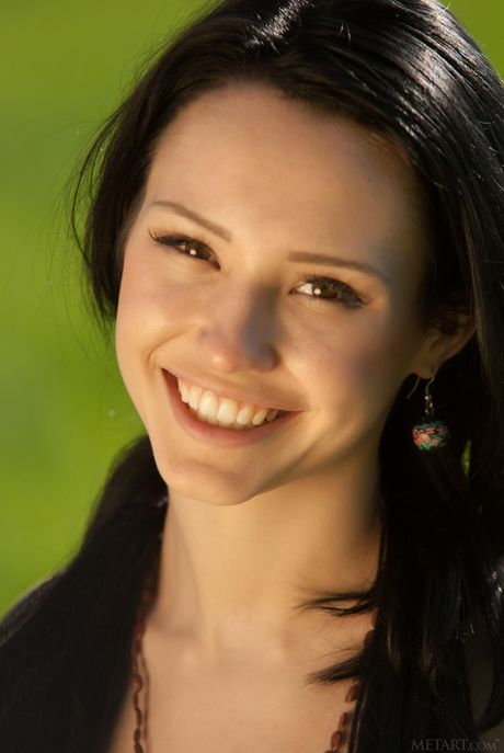 Thin teen Eleonora B strips jeans to pose nude in the countryside