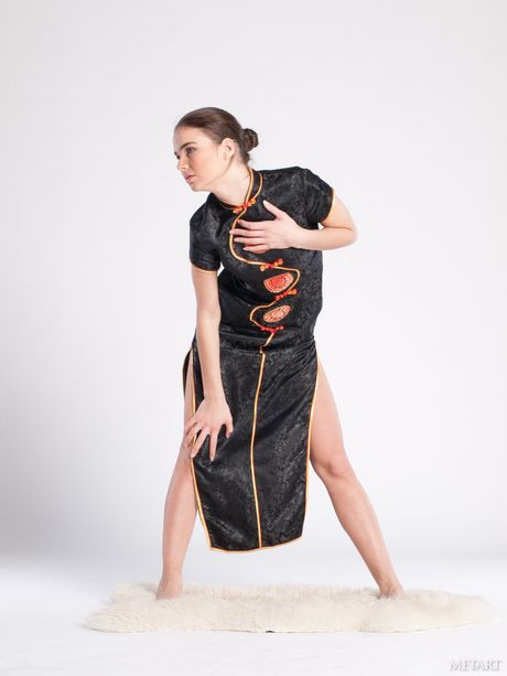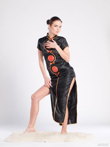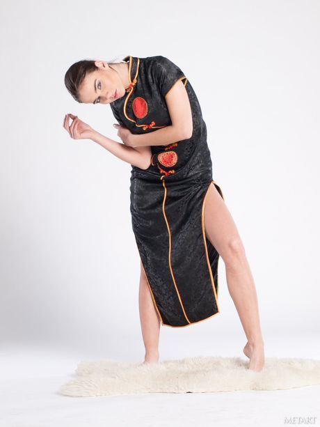 Thin teen Lachia A strips to show her tiny tits & hairy pussy close up