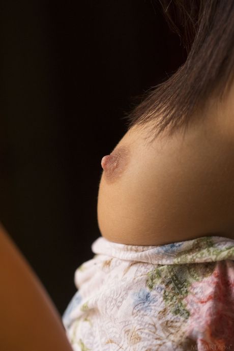 Thin teen Megan Rain removes her bikini and panties to pose nude