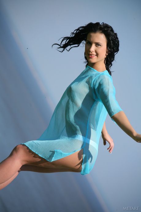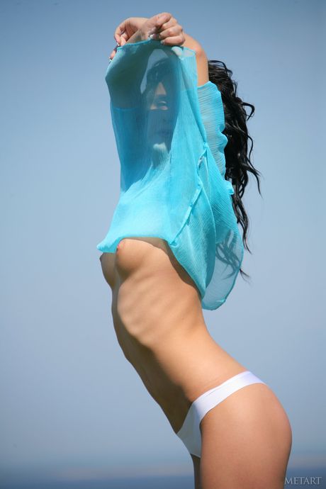 Thin teen Michelle D removes her bikini and poses naked