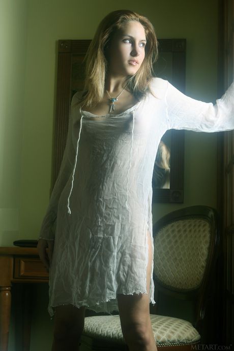 Thin teen Nata B gets rid of her lingerie and poses nude