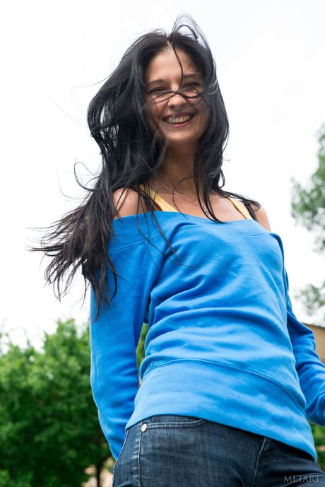 Ukrainian lady Katya Ac strips naked in a field and shows her pussy
