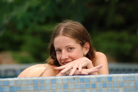 Ukrainian lady Mika A gets naked in the pool and on the deck
