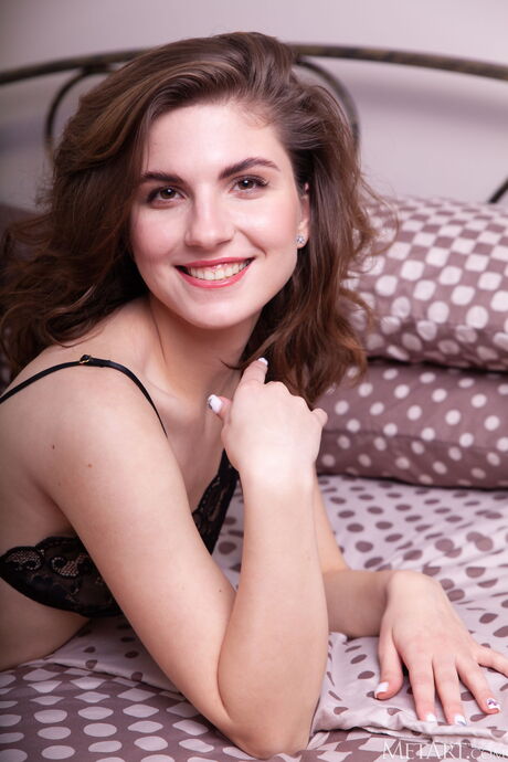Ukrainian lovely Kassie removes her lingerie and exhibits her twat on a bed