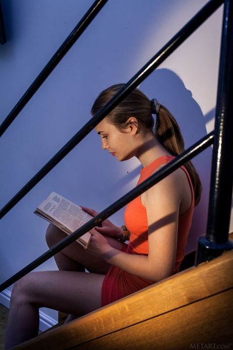 Ukrainian peach Alaine gets naked in a public place and shows her bald pussy