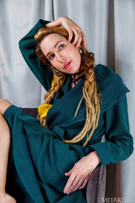 Ukrainian peach Madelina strips naked and presents her big tits and twat